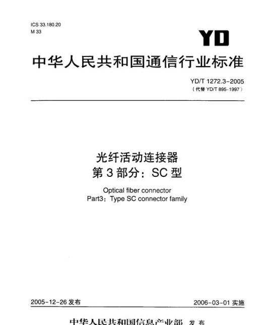 YD/T1272光纤活动连接器》分为3个部分:--第1部分:LC型;