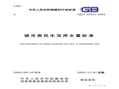 《城市居民生活用水量标准》的公告现批准《城市居民生活用水量标准》为国家标准,编号为GB/T50331一2002,自2002年11月1日起实施