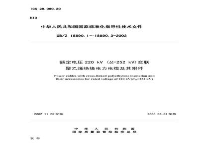 GB/Z18890.1—2002额定电压220kV(U=252kV)交联聚乙烯绝缘电力电缆及其附件第1部分:额定电压220kV(U=252kV)交联聚乙烯绝缘电力电缆及其附件的电力电缆系统