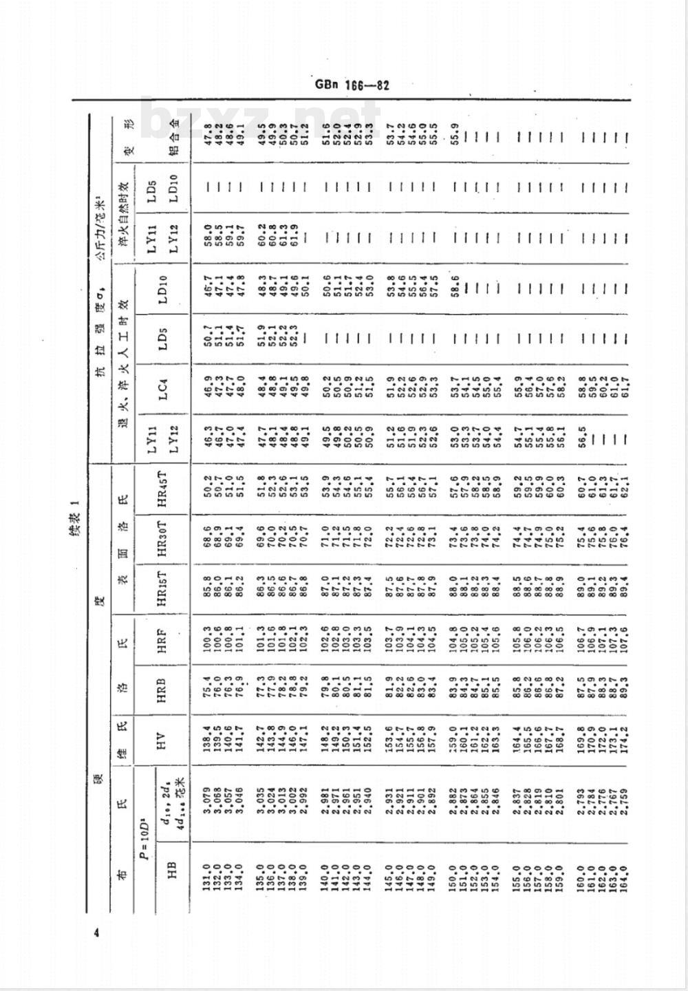 GBN 166-1982 铝合金硬度与强度换算值 GBN166-1982 标准下载解压密码:www.bzxz.net