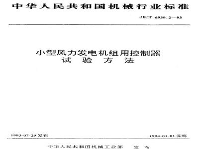 JB/T 6939.2-1993 小型风力发电机组用控制器 试验方法 JB/T6939.2-1993 标准下载解压密码:www.bzxz.net