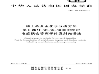 Chemicalanalysismethodsforrareearthferroalloy-Part 6:Determination of molybdenum,tungsten and titanium contents-Inductivelycoupledplasmaemissionspectrometry2023-03-17发布