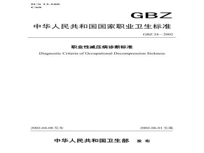 GBZ 24-2002 职业性减压病诊断标准 GBZ24-2002 标准下载解压密码:www.bzxz.net