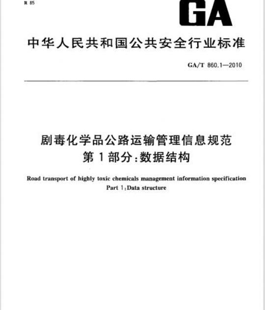 (GA/T860&剧毒化学品公路运输管理信总规范》分为两个部分:一\·第1部分:数据结构;