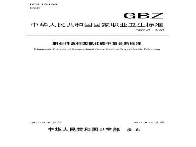本标准由中华人民共和国卫生部提出并归口。本标准由广东省职业病防治院负责起草,参加起草的单位有中山医科大学公共卫生学院,重庆关原化工厂职工医院及河南省职业病防治院。本标准由中华人民共和国卫生部负责解释。职业性急性四氯化碳中毒诊断标准GBZ42-2002