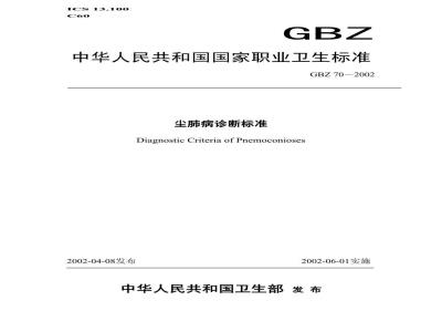 本标准规定了尘肺病的诊断原则和尘肺病的X 射线分期本标准适用于国家现行职业病名单中规定的各种尘肺病。 GBZ 70-2002 尘肺病诊断标准 GBZ70-2002 标准下载解压密码:www.bzxz.net
