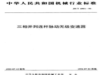 本标准规定了三相并列连杆脉动无级变速器的型式、基本参数、技术要求、试验方法、检验规则、标志、包装、运输和贮存。 JB/T 6951-1993 三相并列连杆脉动无级变速器 JB/T6951-1993 标准下载解压密码:www.bzxz.net