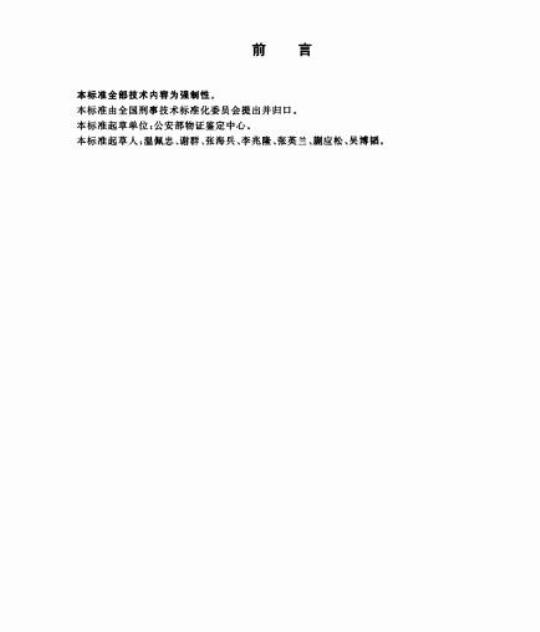 本标准由全国刑事技术标准化委员会提出并归口。本标准起草单位:公安部物证鉴定中心。本标准起草人:温佩忠、谢群、张海兵、李兆隆、张英兰、应松、吴博韬。GA4752004