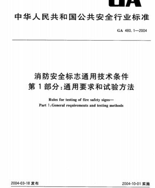 GA 480.1-2004.Rules for testing of fire safety signs-Part 1:General requirements and testing methods.