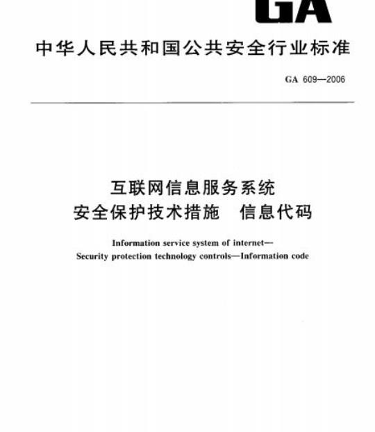 GA 609-2006.Information service system of internet-Security protection technology controls- Information code.