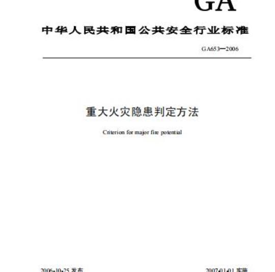 GA 653规定了重大火灾隐患的判定原则,提供了重大火灾隐患的判定方法。