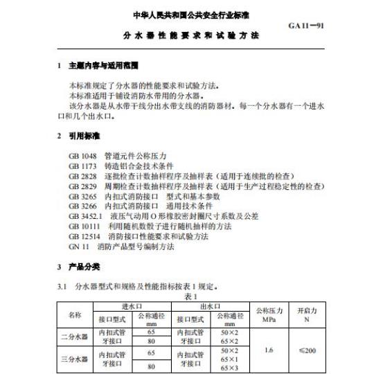 按5.2条规定的试验方法进行水压强度试验,分水器本体不允许有泄漏现象,其他部件不允许有影响正常使用的残余变形。
