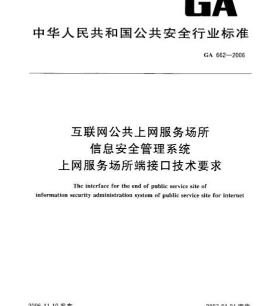 中文名称:互联网公共、上网服务场所信息安全管理系统上网服务场所端接口技术要求