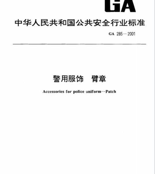 GA 285适用于以涤纶低弹丝机织、贴衬、锁边等工艺制作的99式警用服饰一臂章的生产及检验。