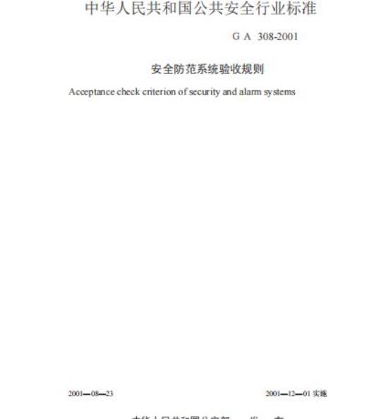 GA 308对安全防范系统的质量验收,从设计、施工、效果及技术服务等方面提出了必须遵循的基本要求,是对安全防范系统(工程)进行验收的依据。
