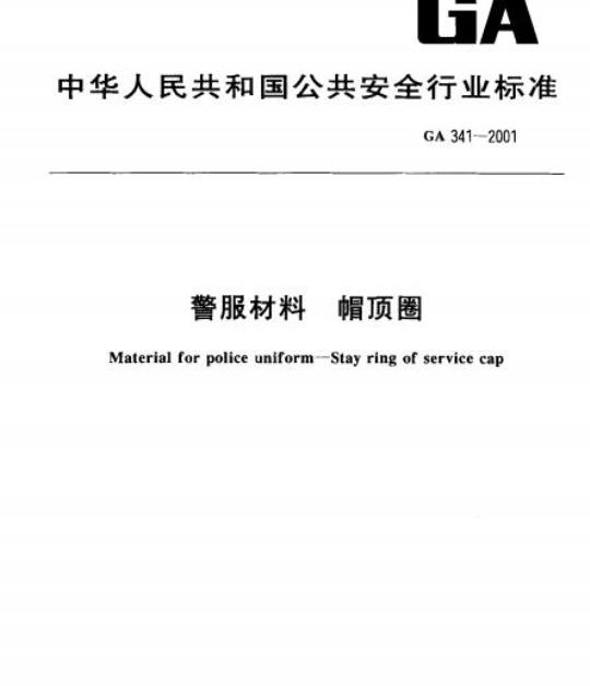 GA 341规定了99式警服用帽顶圈的技术要求.试验方法、检验规则、标志、包装、运输及贮存。