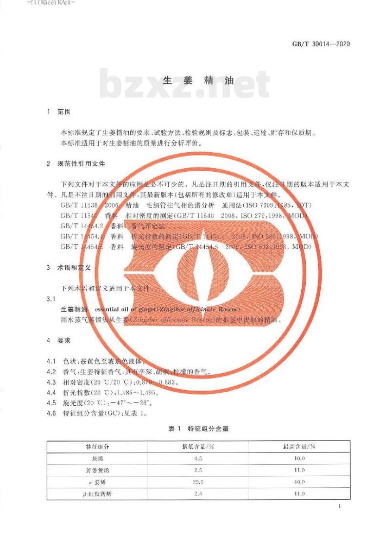 GB/T 39014-2020.Essential oil of ginger (Zingiber officinale Roscoe).