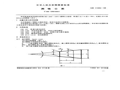 本标准规定了圆锥公差的项目、给定方法和公差数值。本标准适用于锥度C从1*3至1:500、圆锥长度L从6至630mm的光滑圆锥。本标准中的圆锥角公差也适用于棱体的角度与斜度。2引用标准