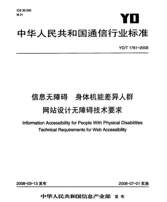 YD/T 1761-2008.Information Accessbility for People With Physical Disabilities Technical Requirements for Web Accessibility.