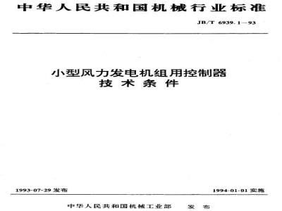 JB/T 6939.1-1993 小型风力发电机组用控制器 技术条件 JB/T6939.1-1993 标准下载解压密码:www.bzxz.net