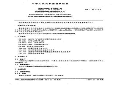 本标准等效采用国际电工委员会IEC740岁通信和电子设备用变压器和电感器铁心片》。主题内容与适用范围