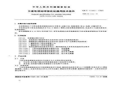 本标准规定了卫星电视地球接收站的技术要求、试验方法、检验规则、标志、包装、运输和贮存。本标准适用于彩色电视制式为PAL-D制的C频段卫星电视地球接收站,也适用于与通信兼容的电视地球站。 GB/T 11442-1995 卫星电视地球接收站通用技术条件 GB/T11442-1995 标准下载解压密码:www.bzxz.net