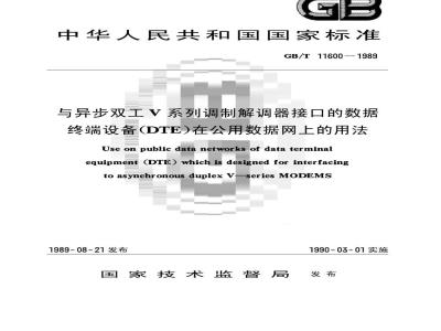 与异步双工V系列调制解调器接口的数据终端设备(DTE)在公用数据网上的用法Use on public data networks of data terminalequipment (DTE)which is designed for interfacingto asynchronous duplex V-series MODEMS本标准等效采用cCITT建议X.20bis。GB/T11600—1989