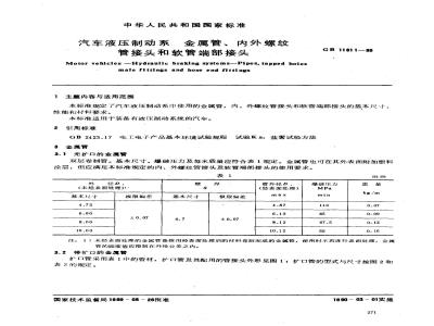 GB/T 11611-1989 汽车液压制动系 金属管、内外螺纹管接头和软管端部接头 GB/T11611-1989 标准下载解压密码:www.bzxz.net