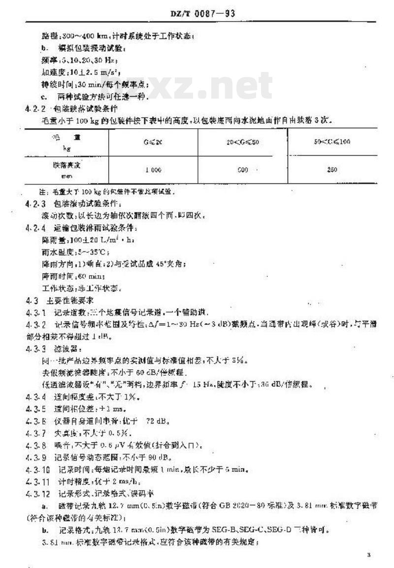 D2941.地质仪器产品运输位装基态环境试验条件及方法运输包装自中跌落试验DZ40.6地武仪器产吊退输包装需本坏境试腔条件及方痣运拖包装游雨试题20041地质仪器产品质盈检验规则3产品分类与型式