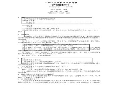 下面列出适用于各类辞书编纂的符号和汉语辞书编纂使用的符号以及双语、多语辞书编纂使用的符号。它们的形式(包括间空的安排)应与GB/T8565.3和GB13000.1中制定的随缸织耀17hzn羧壁消缸器年餐静消象断标准技授网W各实标准行业资科免费下懿