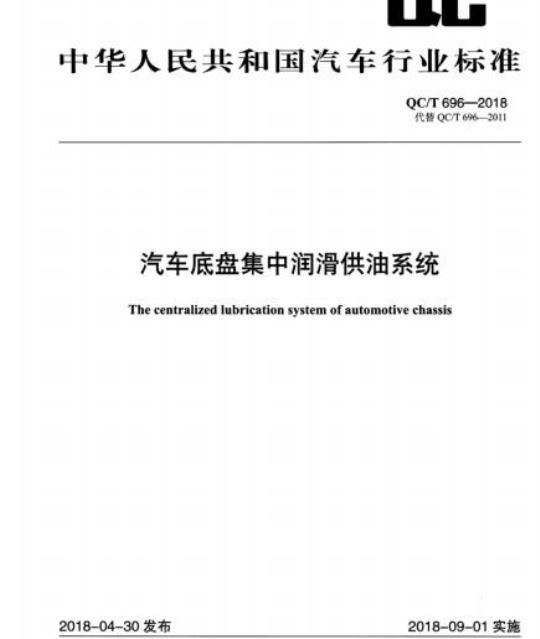 QC/T 696-2018.The centralized lubrication system of automotive chassis.
