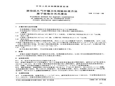 居住区大气中镉卫生检验标准方法原子吸收分光光度法