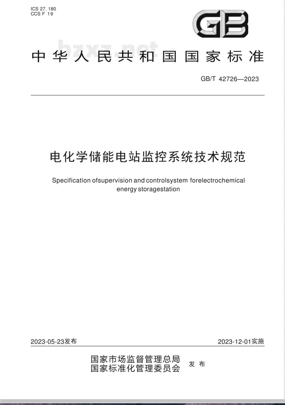 电化学储能电站监控系统技术规范GB/T42726—2023