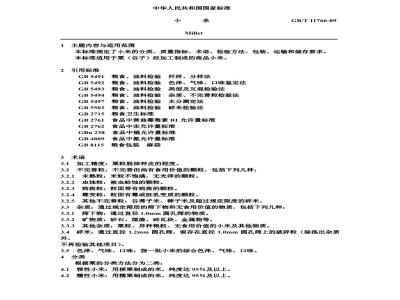 本标准规定了小米的分类、质量指标、术语、检验方法、包装、运输和储存要求。本标准适用于粟(谷子)经加工制成的商品小米。 GB/T 11766-1989 小米 GB/T11766-1989 标准下载解压密码:www.bzxz.net