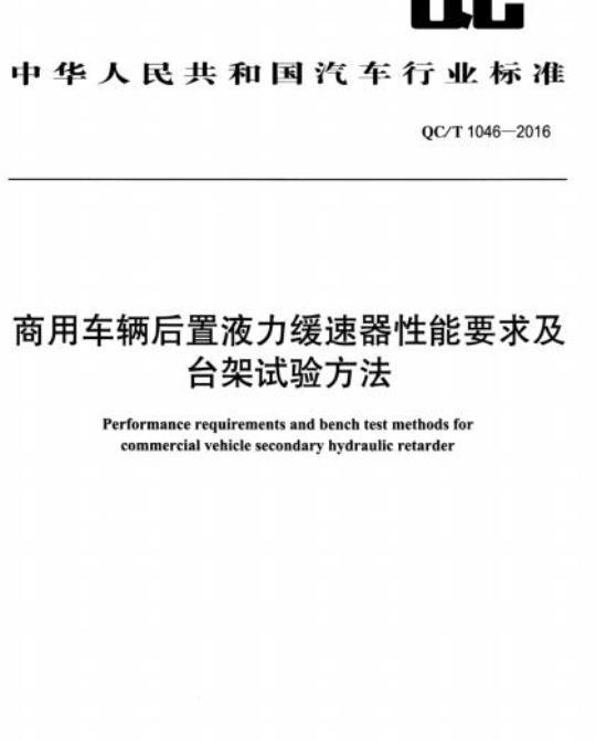 QC/T 1046-2016.Performance requirements and bench test methods for commercial vehicle secondary hydraulic retarder.