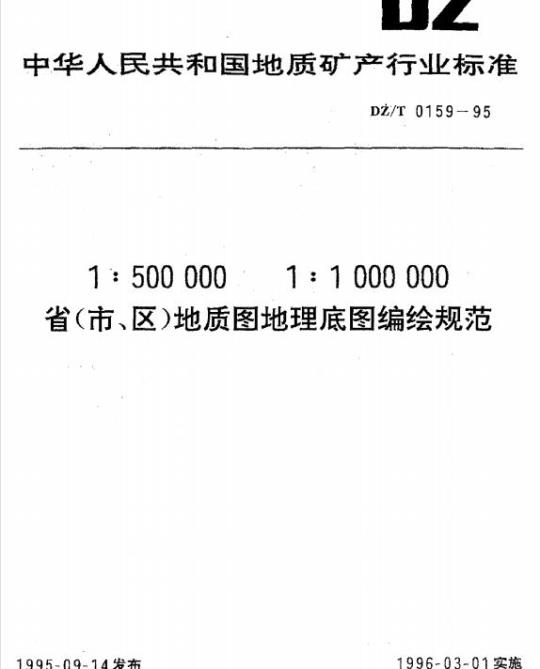 DZ/T 0159适用于1:500000、1:1000000省(市、区)地质图地理底图的编绘。面积较小或较大的省(市、区)在采用大于1:500000或小于1:1000000比例尺时地理底图的编绘也应参照执行。