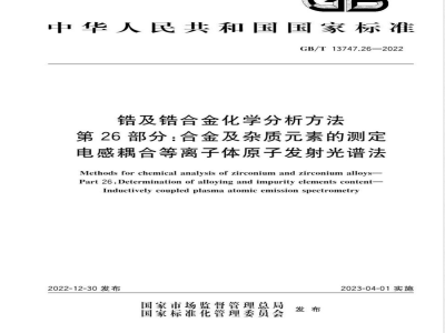 英文名称:Methods for chemical analysis of zirconium and zirconium alloys—Part 26:Determination of alloying and impurity elements content—Inductively coupled plasma atomic emission spectrometry