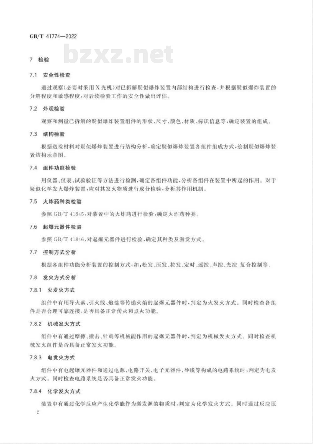 参照GB/T41846,对起爆元器件进行检验,确定其种类及激发方式。7.7