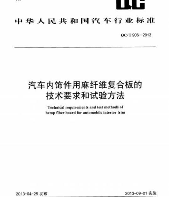 Technical requirements and test methods ofhemp fiber board for automobileinterior trim2013-04-25发布