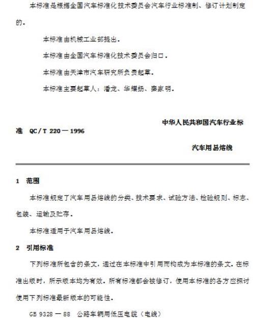 QC/T 220适用于汽车用易熔线。