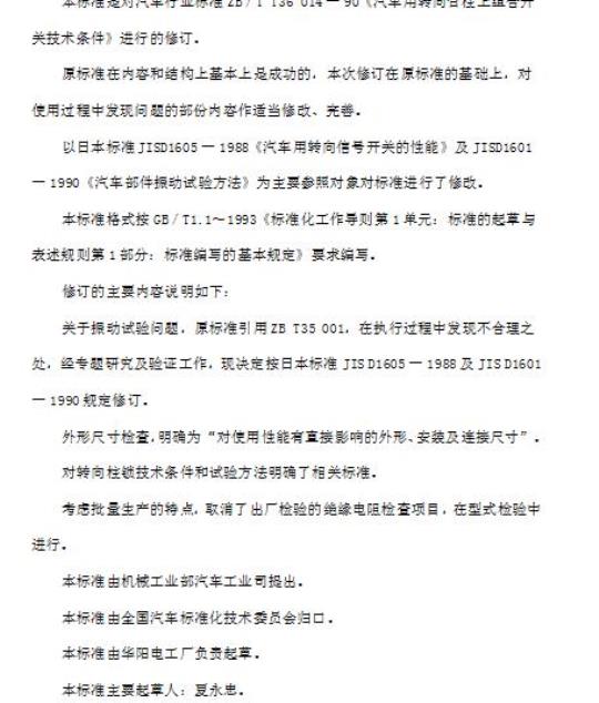 QC/T 218适用于安装在汽车转向管柱上的组合开关(以下简称“组合开关”)。
