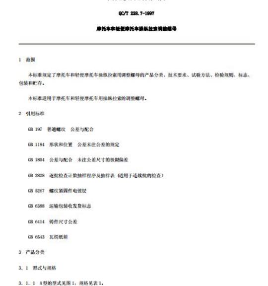 QC/T 228.7适用于摩托车和轻便摩托车用操纵拉索的调整螺母。