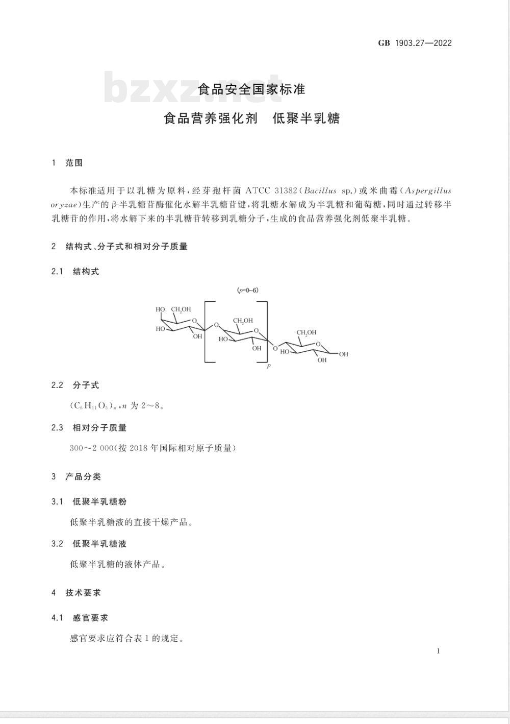 中文名称:食品安全国家标准 食品营养强化剂 低聚半乳糖