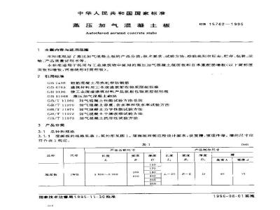 本标准规定了蒸压加气混凝土板的产品分类、技术要求、试验方法、检验规则和标志、贮存、包装、运输、产品质量证明书等。本标准适用于民用与工业建筑物中使用的蒸压加气混凝土屋面板和自承重配筋墙板。 GB 15762-1995 蒸压加气混凝土板 GB15762-1995 标准下载解压密码:www.bzxz.net