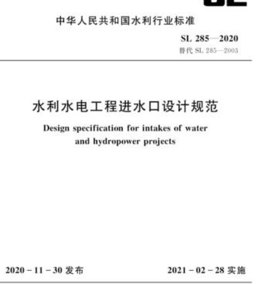 SL 285-2020.Design specification for intakes of water and hydropower projects.