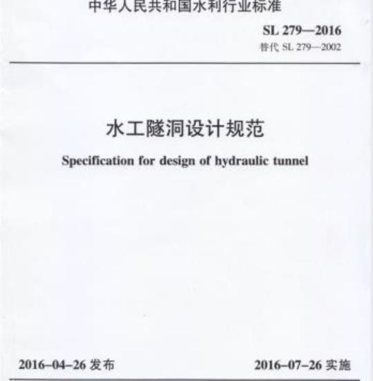 中华人民共和国水利部批准《水工隧洞设计规范》(SL279—2016)为水利行业标准,现予以公布序号