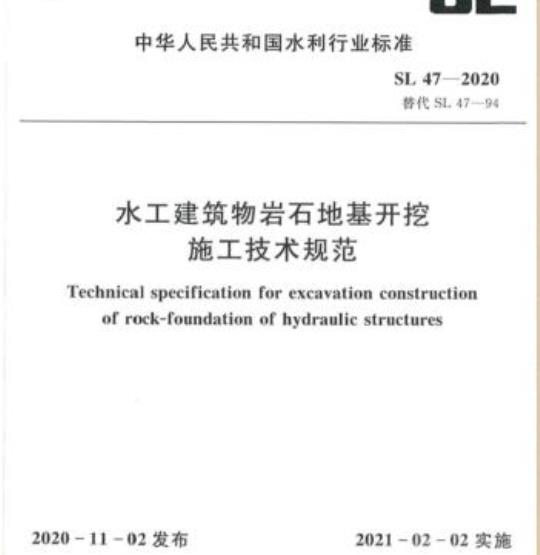 SL 47-2020.Technical specification for excavation construction of rock-foundation of hydraulic structures.