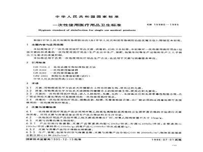 Hygienic standard of disinfection for single use medical productsGB15980--1995