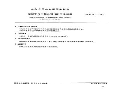 车间空气中氧化镁(烟)卫生标准Health standard for magnesium oxide (fume)in the air of workplace