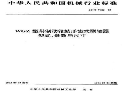 本标准规定了WGP型带制动轮鼓形齿式联轴器的型式、基本参数和主要尺寸。 JB/T 7003-1993 WGZ型带制动轮鼓形齿式联轴器 型式、参数与尺寸 JB/T7003-1993 标准下载解压密码:www.bzxz.net